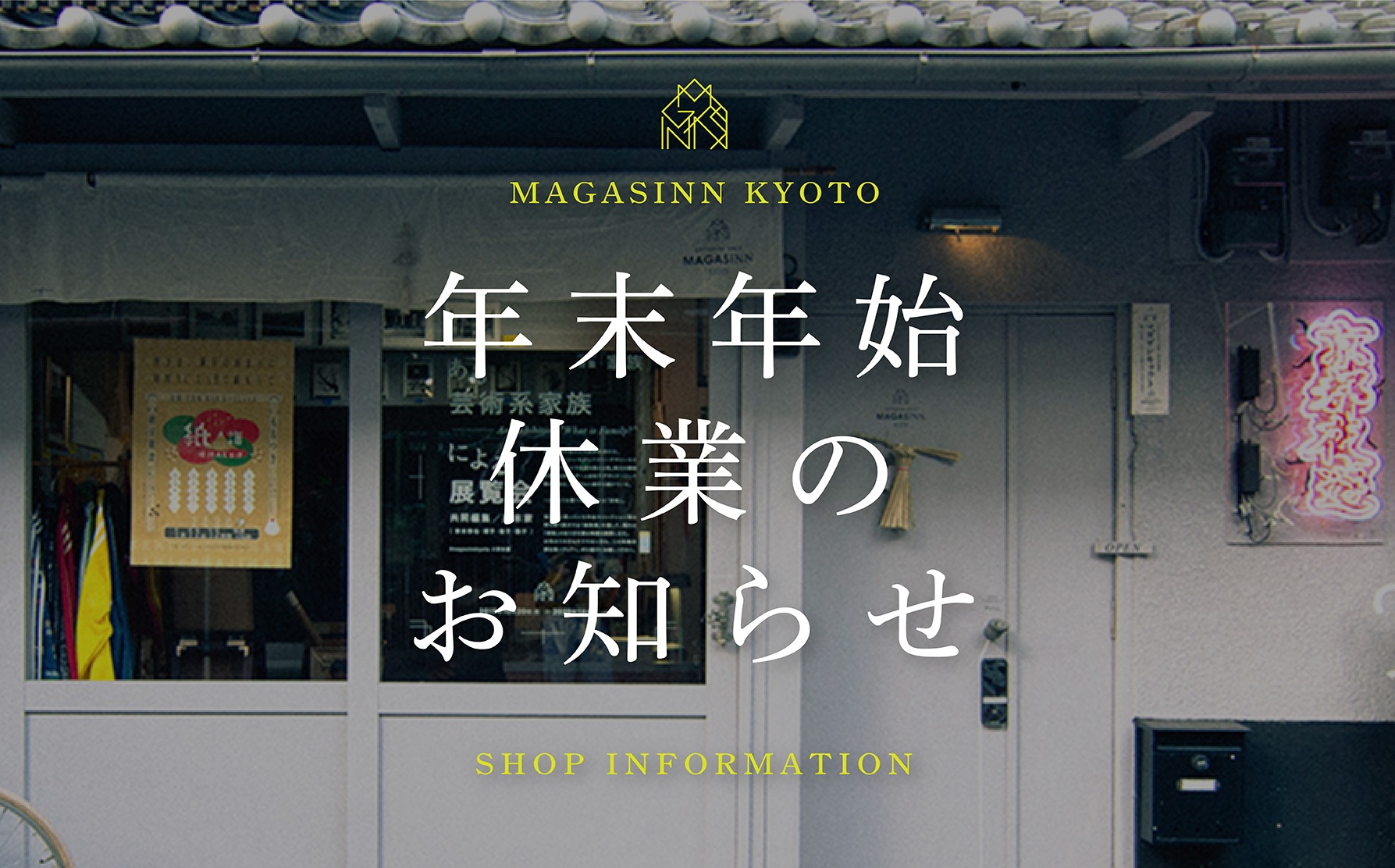 誠に勝手ではございますが、下記の期間にてマガザンキョウトは年末年始のお休みをいただきます。オンラインストアの発送についてもストップさせていただきますので、何卒ご容赦ください。
