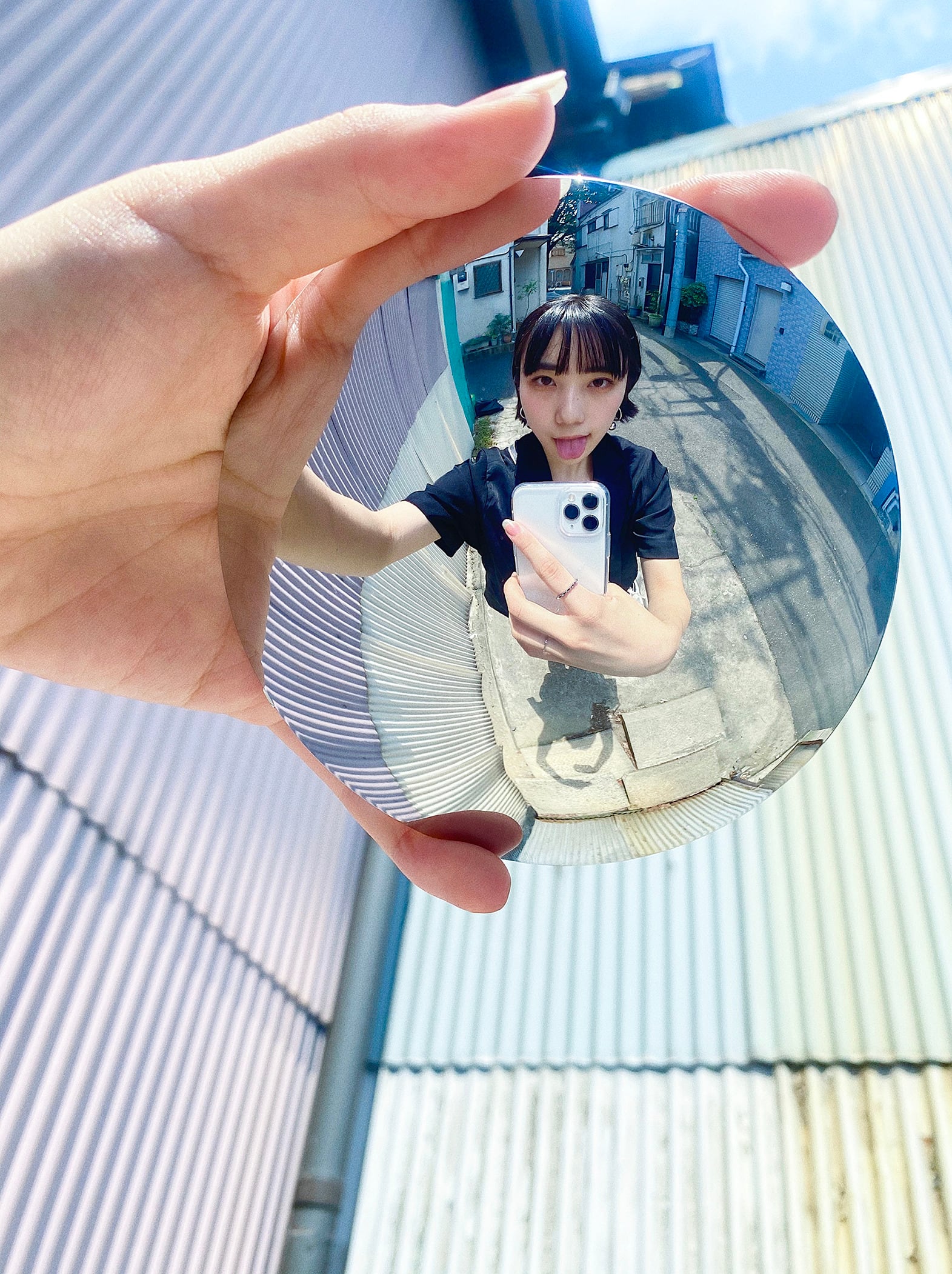 鏡は、私たちの日常と密接に結びつき、「他者から見えている自分」を確認する装置である。その機能性を拡張し、街中に鏡を配置することで、鏡に映る自己と鏡の外に広がる風景を同一フレームに重ねていく。