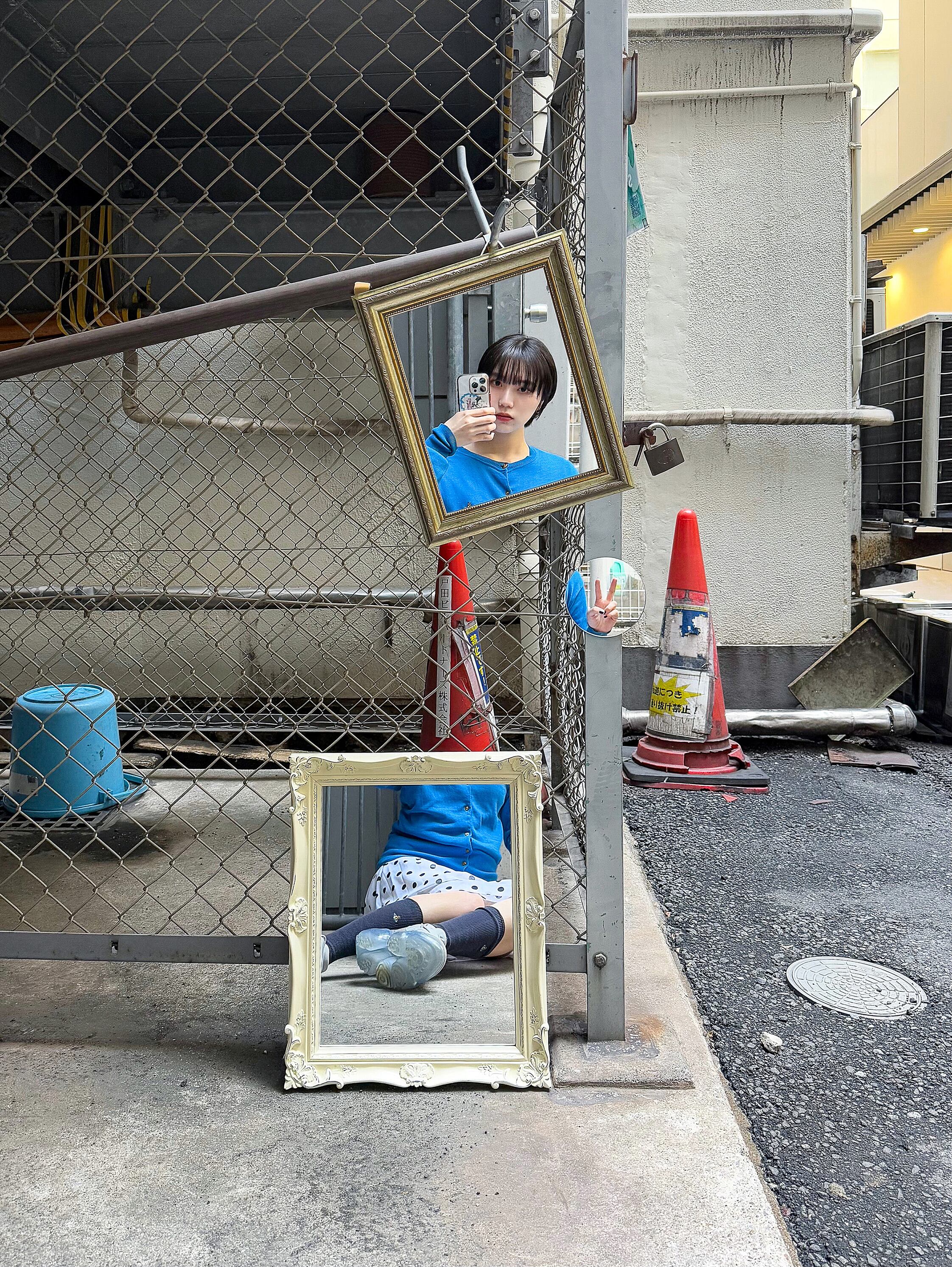 鏡は、私たちの日常と密接に結びつき、「他者から見えている自分」を確認する装置である。その機能性を拡張し、街中に鏡を配置することで、鏡に映る自己と鏡の外に広がる風景を同一フレームに重ねていく。