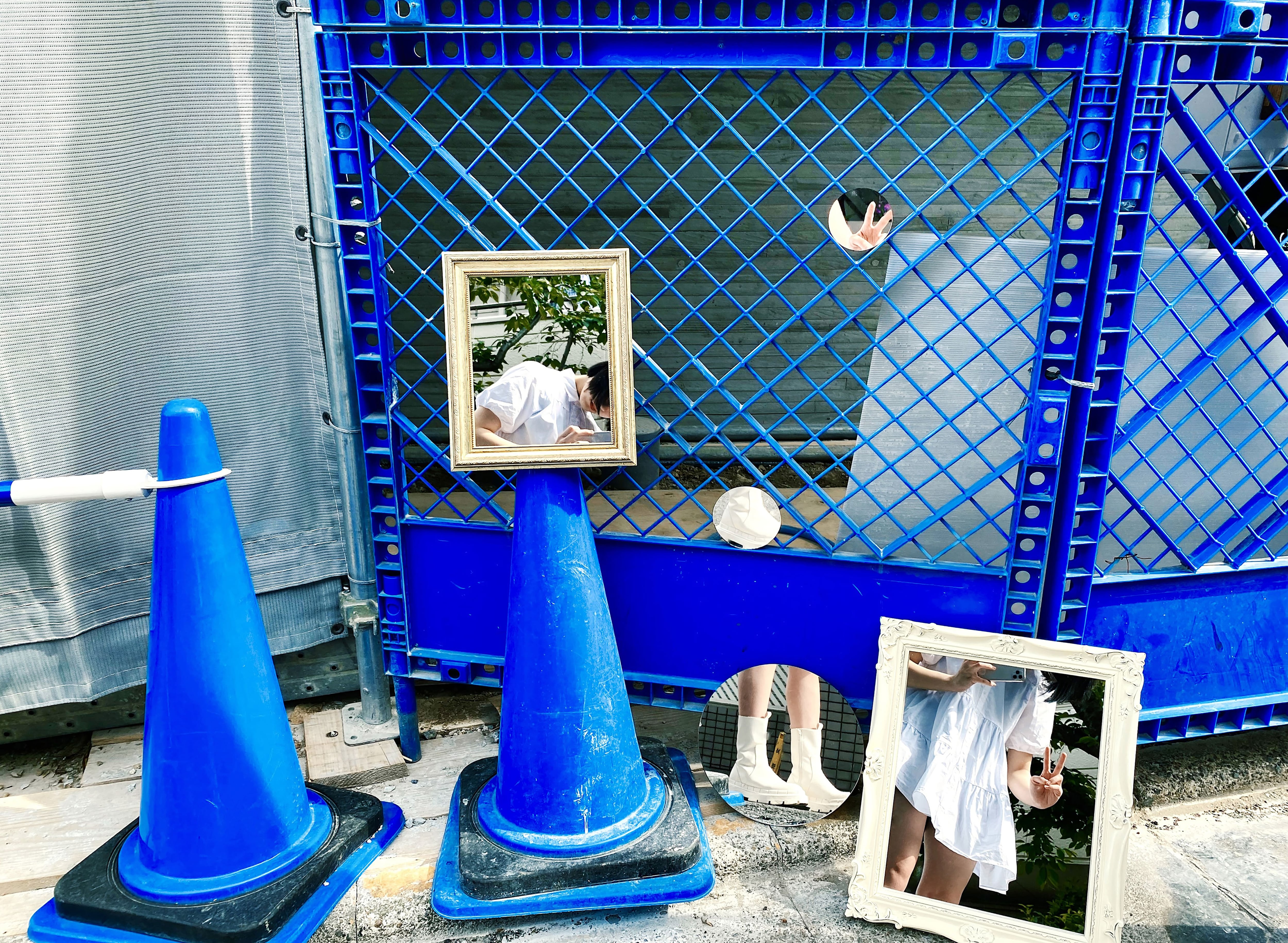 鏡は、私たちの日常と密接に結びつき、「他者から見えている自分」を確認する装置である。その機能性を拡張し、街中に鏡を配置することで、鏡に映る自己と鏡の外に広がる風景を同一フレームに重ねていく。